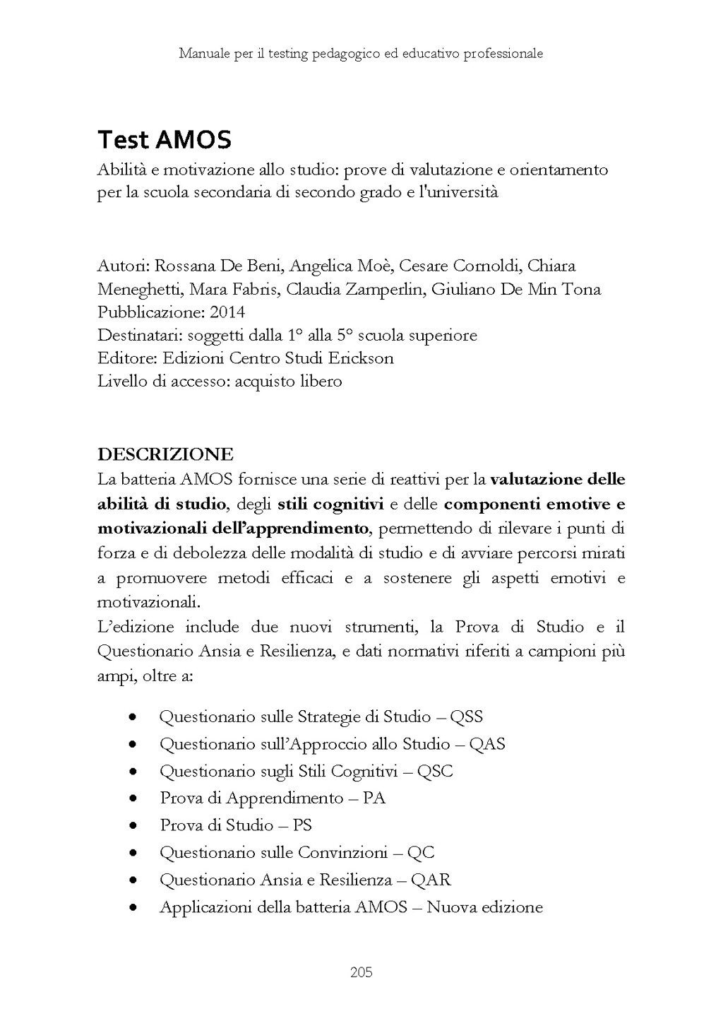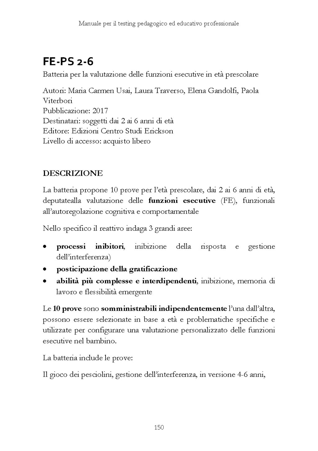 La prima sezione comprende una descrizione pratica che accompagna il professionista dall’acquisto del test fino al colloquio di restituzione, mentre la seconda sezione include una disanima analitica di 100 test dedicati a educatori sociali e pedagogisti.